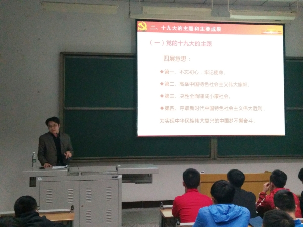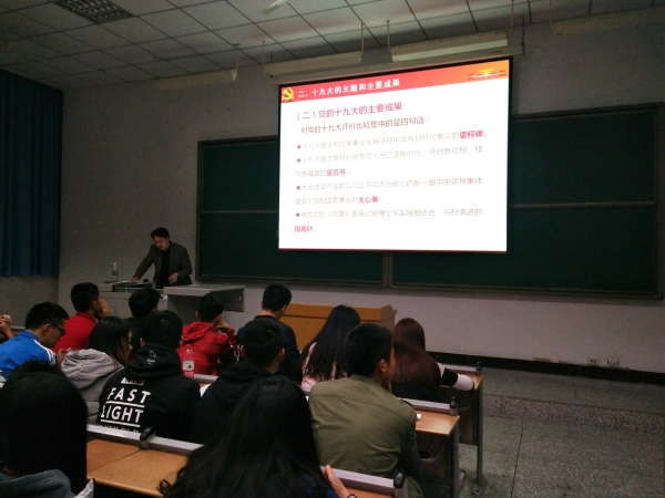 按照中共重庆市委宣传部印发的《党的十九大精神“六进”宣讲活动工作方案》和中共重庆市委教育工委、重庆市教育委员会《关于印发党的十九大精神进校园宣讲活动工作方案的通知》(渝教工委〔2017〕126号)要求,以及(重文理宣〔2017〕18号)的统一部署,学校十九大宣讲队成员、学校科技部副部长胡守敏于11月19日晚在红河七阶为bat365官网2016级全体学生解读了十九大的新内涵。