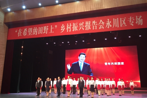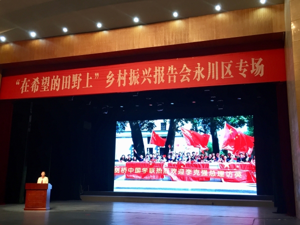 为深入学习贯彻我党关于实施乡村振兴战略的重大决策部署,bat365官网学子于4月3日下午14:00在永川区文化艺术中心参加了“在希望的田野上”乡村振兴报告大会,2017级辅导员卢德强带领。