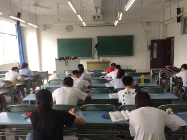 7月13日上午八点二十分,2016级“卓越教师班”班长与学习委员准时到考务办公室领取密封试卷;到教室后按照考试规范为大家宣讲考试纪律和要求;发放签到表、试卷、答卷的每一个细节都显示出精心的准备;在全程视频摄像的督促下,同学们按照考试要求顺利完成了考试;全程无作弊抄袭、交头接耳等作弊违纪行为。