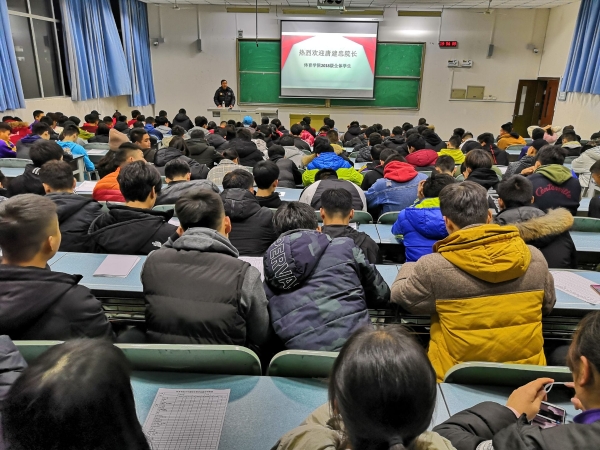 他以“办学历史”“特色专业”为关键词,要求学生在掌握好口令、队列队形等基本素质的同时还要积极备考教师资格证;对于社会体育指导与管理专业,他着重为大家介绍了该专业当下最有优势的就业方向——体育产业经营和赛事组织;对于运动康复专业,他强调要注重知识的积累与实践,这样才能让知识产生由量变到质变的效果。