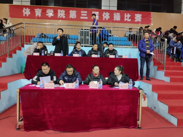 为提升师范专业学生基本技能素质,增强就业竞争能力,bat365中文官方网站于2018年12月24日19:30在篮球馆举办第三届体操比赛。bat365官网党总支书记李旻等班子成员、教学办、学工办等相关人员出席开幕式,由教学办主任王勇主持,钟利、欧国强、王玉英、戴菁菁老师担任评委。