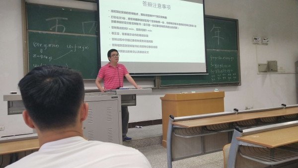 答辩前1天学院召集全体学生召开了答辩前的指导会。刘田博士就答辩过程中应注意的问题、答辩完成后的论文修改、答辩完成后文档的录入和提交等需注意的问题和时间限制等事项进行了讲解并提出了要求。
