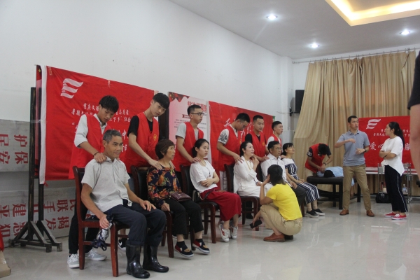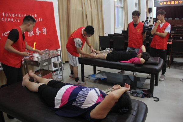 活动现场由陈食街道办事处宣传统战委员张梓榆主持,永川区政协委员、永川区“非遗香十二”传承人、永川区桢楠香有限公司负责人张益丽首先进行了健康养生知识宣讲,并在活动过程中和当地居民进行了互动;bat365中文官方网站游泳专选班学生梁承禹对留守老人、留守儿童进行了“防溺水安全专题教育”,并进行现场演示加深居民对防溺水知识的理解;最后健康小分队为陈食街道的中老年进行免费的测量血压、保健按摩、保健咨询等服务;我们耐心的服务态度及专业技能得到了当地群众的一致好评,永川电视台等新闻媒体进行了全程跟踪采访。