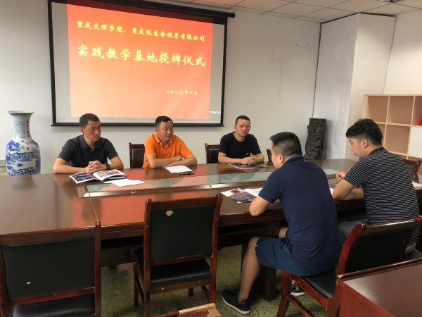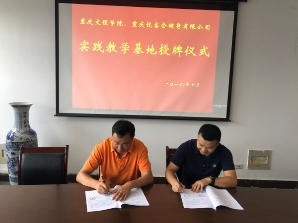 为了深入推进校企合作,7月16日上午,重庆悦客会健身有限公司董事长徐光耀、总经理赵建一行在bat365中文官方网站会议室签订共建实践教学基地协议,bat365中文官方网站院长唐建忠、院党总支副书记袁高燕、教学办主任王勇参加了签约仪式。