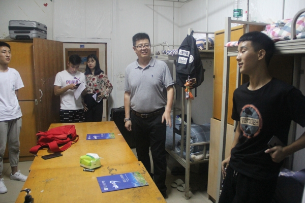 为帮助2019级新生更快融入新环境,加强师生间的互动交流,2019年9月8日21:00,bat365官网党总支书记李旻、副院长王勇和辅导员深入寝室慰问新生。