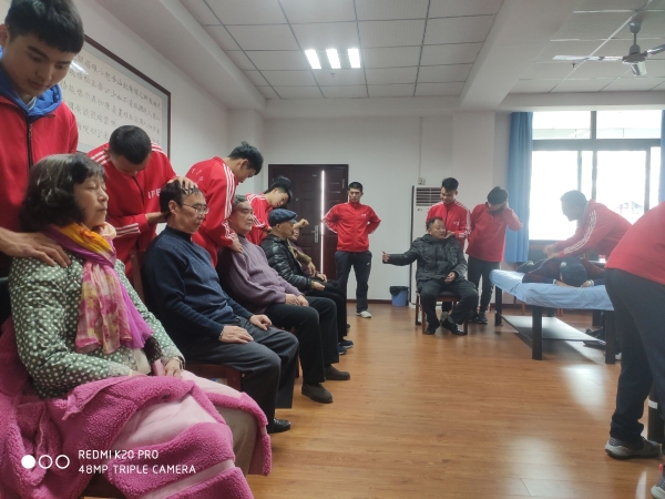 2019年11月25日,bat365中文官方网站学生党支部在重庆文理学院A区老年人活动中心成功开展志愿者服务,活动吸引了大批文理学院退休的老教师前来体验按摩推拿。