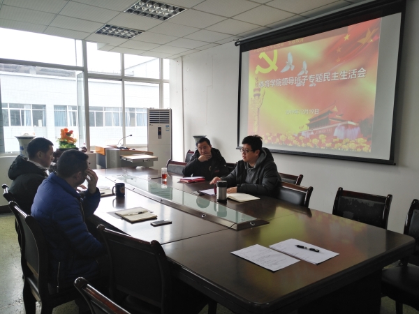 首先,唐建忠院长代表学院对2018年民主生活会对班子提出问题的整改落实情况做了通报;然后,李旻书记代表班子做本年度对照检查;最后,唐建忠、李旻、袁高燕和王勇四位同志分别进行个人对照检查发言,随后班子成员相互开展了批评。