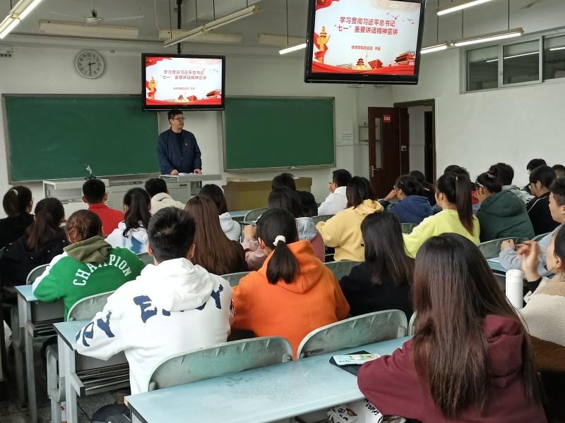 10月20日下午14:30,体育学院党总支在知津楼A409举行习近平总书记“七一”重要讲话精神“进校园”宣讲会。宣讲会由体育学院党总支书记李旻主讲,学院学生支部党员、发展对象和入党积极分子60余人参加会议。