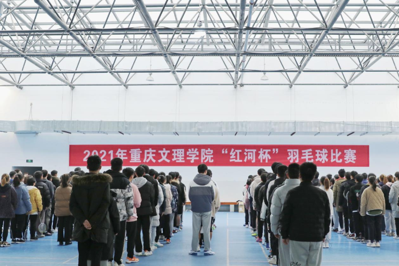 2021年12月11日下午,重庆文理学院“红河杯”羽毛球比赛在红河B区羽毛球馆隆重开幕。本次比赛由校体委主办,bat365中文官方网站承办,bat365中文官方网站2019级、2020级羽毛球主项专选班同学担任裁判。红河、星湖两校区的17个学院代表队共计200余人参加了此次比赛。
