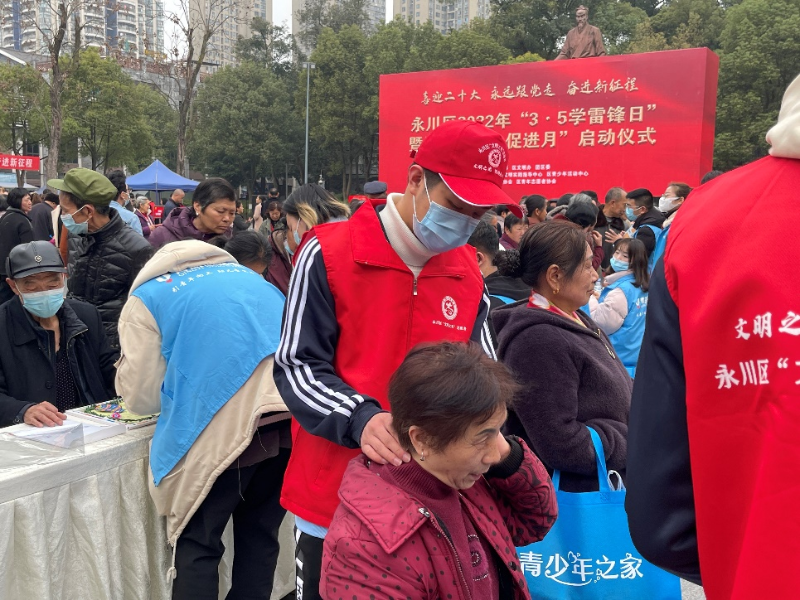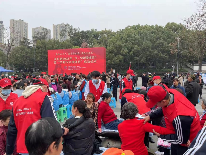 为深学笃用习近平新时代中国特色社会主义思想,深入贯彻习近平总书记关于志愿服务工作的重要指示精神,2022年3月3日永川区开展“3·5学雷锋”暨文明行为促进月启动仪式,bat365中文官方网站健康小分队受邀参加志愿服务活动。