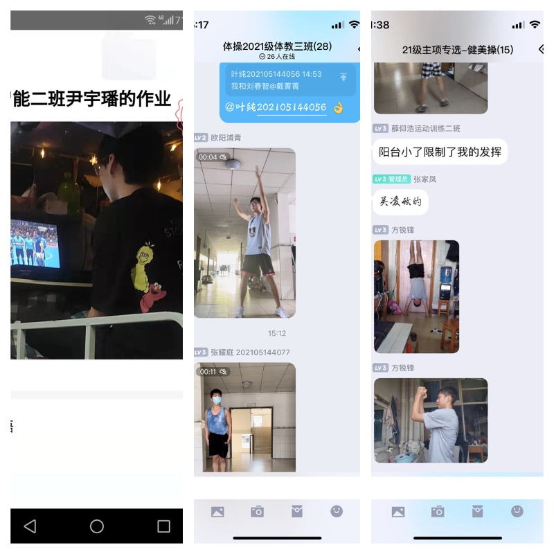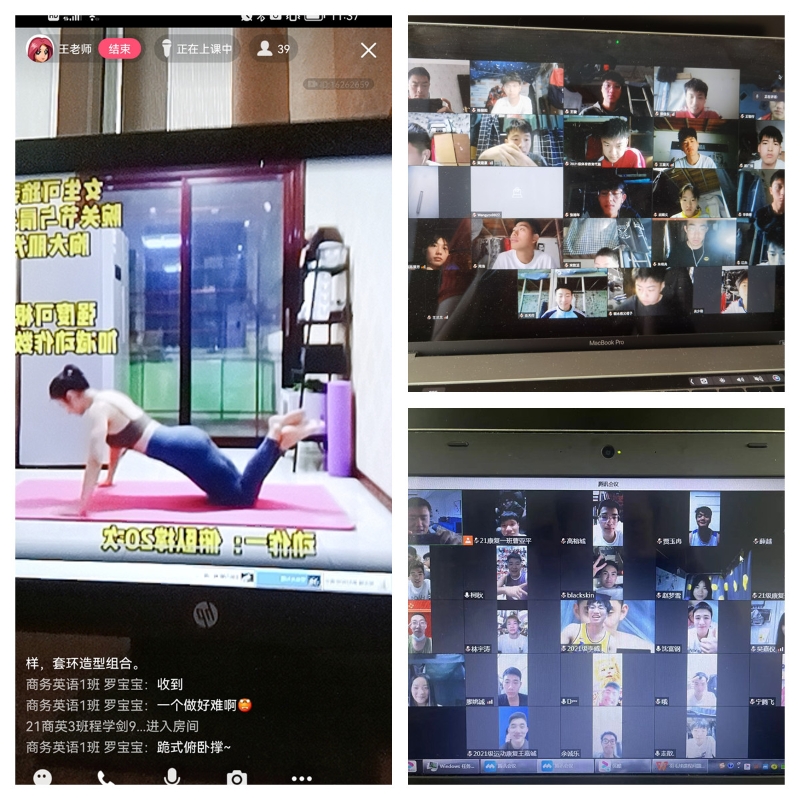 “台上十分钟,台下十年功”,为保障线上教学顺利开展,克服体育实践类课程线上教学空间狭小和器材缺乏的难点,bat365官网教师积极开展线上教学专题教研,全院教师发挥各自专长,悉心准备,通过合理调整优化教学内容,根据项目特点选择合适的教学方法,采用直播、录制教学视频等形式开展线上教学,开发了健身操、啦啦操、太极拳和瑜伽等多个可在有限空间开展的线上教学视频,确保线上教学顺利开展。同时同学们也积极开动脑筋,发挥想象力,在狭小的空间范围内,充分利用身边有限的资源妙招迭出,创造出各式各样的自制锻炼“神器”,给线上教学增添了一份别样的精彩。