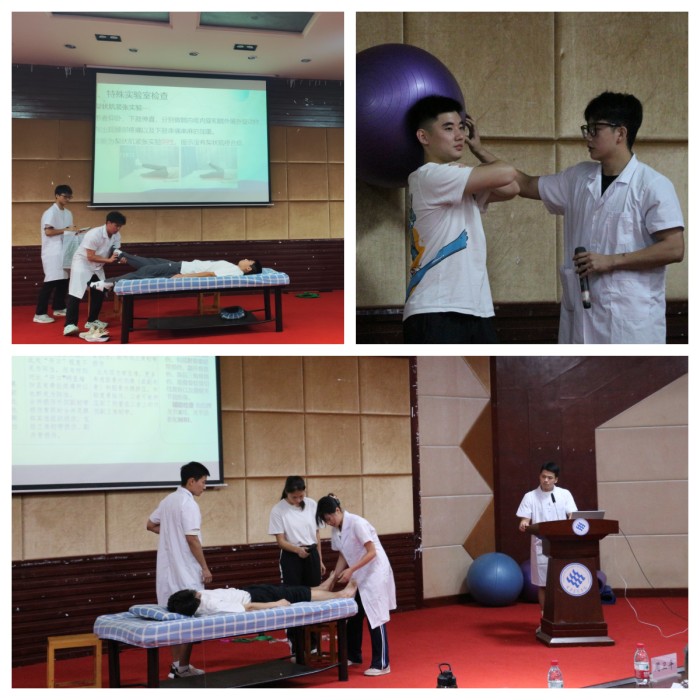 运动康复技术技能比赛是学校第九届非教师教育类学生专业技能大赛的立项项目,比赛于6月5日正式启动,今年的比赛项目由短视频制作及网络投票、病例书面材料评比、PPT汇报及现场展示三部分组成。在前期视频制作及网络投票环节中,学生们的作品吸引了很多其他专业学生及学生家长对本专业的关注;在现场展示环节中,学生们将专业知识融会贯通地应用于常见肌肉骨骼系统疾病的康复中,充分体现了运动康复专业学生的职业技能和精神风貌,展示了专业建设、教学改革和人才培养成果,为激发运动康复专业学生实践能力培养创造了舞台。