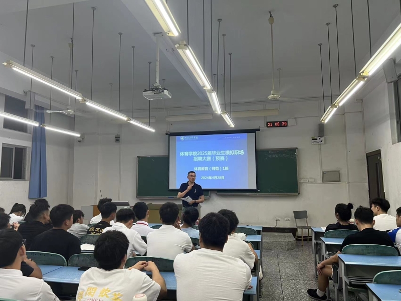 2024年4月28日晚上7:20 ,bat365官网在知津楼开展2025届毕业生模拟职场招聘大赛,学院党委副书记/纪委书记余继军出席比赛现场,体育教育系主任钟利、运动康复系主任邱国荣、运动训练系副主任程大力、专任教师邓剑兰、学生办公室主任/团总支书记卢德强、2022级/2020级辅导员张谦、2023级辅导员蒋雨荷担任比赛评委,2021级全体学生参赛,2022级和2023级全体学生现场观摩学习,全院共计500余人参加。