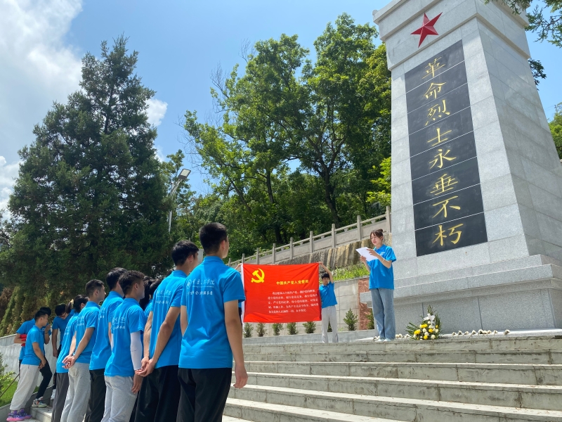 2022年6月30日,bat365官网赴武隆区江口烈士陵园开展入党宣誓仪式暨党性实践锤炼活动,学院部分党员教师、学生党员及入党积极分子20余人参加,活动由学生第一党支部书记卢德强主持。