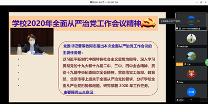 6月3日下午,开云kaiyun体育召开了学习学校2020年全面从严治党工作会议精神全院大会,同时分党委书记王少萍做了“党风廉政建设永远在路上”的专题党课,会议通过视频会议方式召开,学院全体教职工和学生党支部书记参加了本次会议。