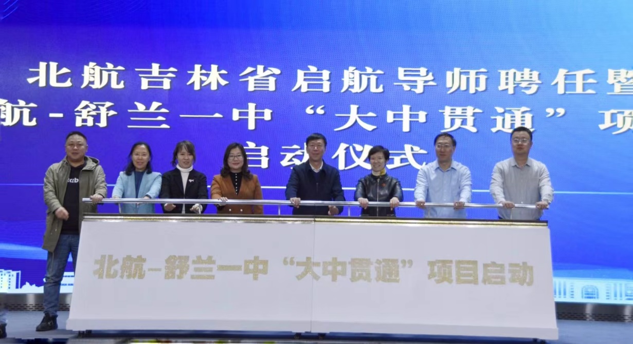 仪式上,我校领导为启航导师代表颁发聘书,双方领导共同推动启动杆,标志着北京航空航天大学-吉林舒兰一中“大中贯通”项目正式启动。我校将继续整合校内外资源,精心实施启航导师项目和大中贯通项目,确保为学校高质量人才培养提供高水平的生源支持。