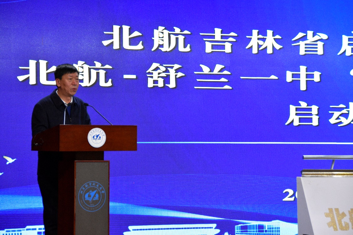 倪彦鹏在讲话中指出,深切感谢北航的协助与支持,“大中贯通”项目紧随国家教育政策,舒兰一中具有丰富历史和卓越办学成绩,与北航有深厚合作基础。学校将充分利用北航的资源,培养学生科学精神和创新能力,切实做好大中有效衔接,共同推进教育事业,共创未来。