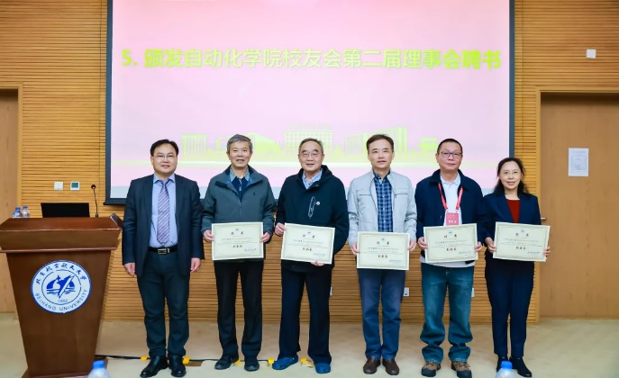 会议推选胡庆雷任会长,何一兵、吉英存、马军、陶冲、王少萍、王巍、王祖同、杨毅、赵平任副会长,王兴坚任秘书长,贾子超任副秘书长,并向各位理事会成员颁发自动化学院校友会第二届理事会聘书。